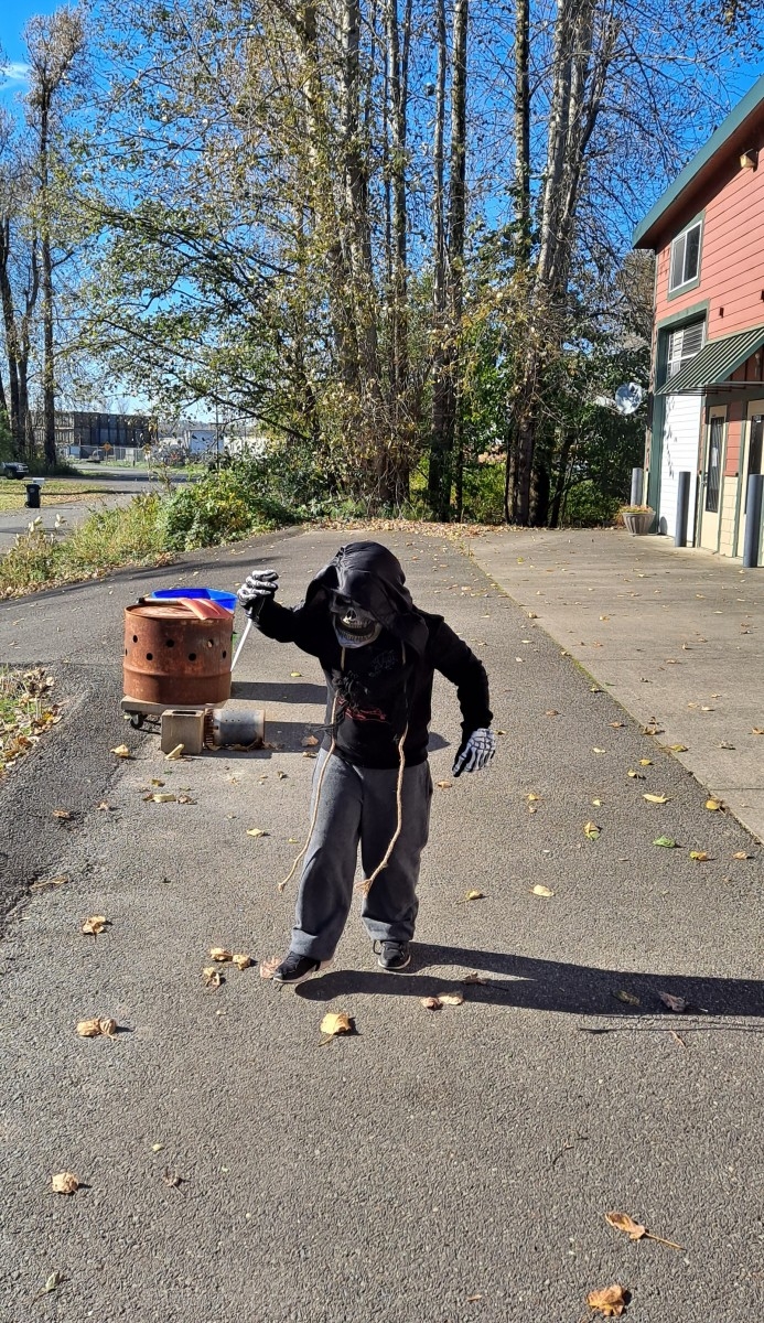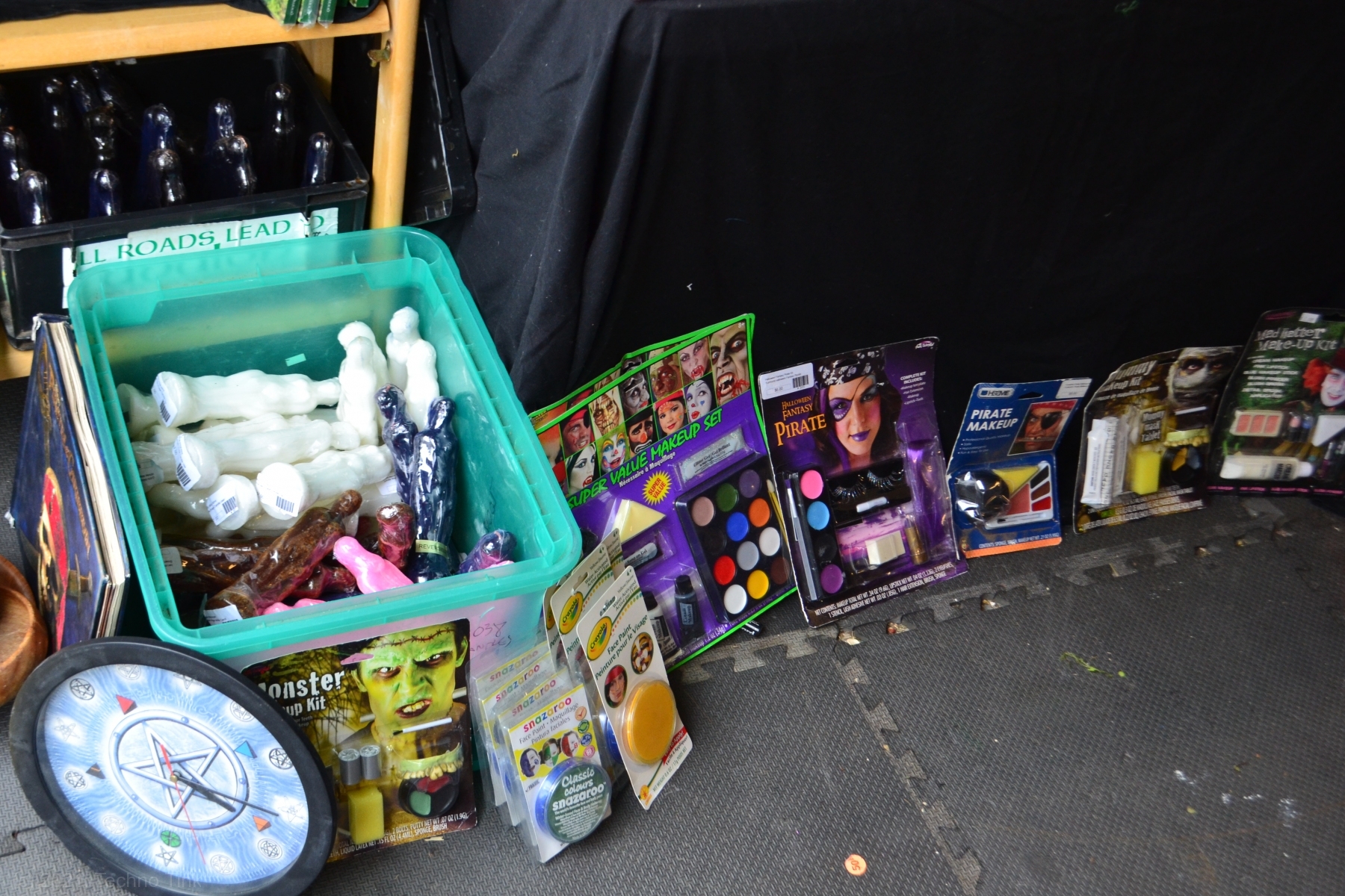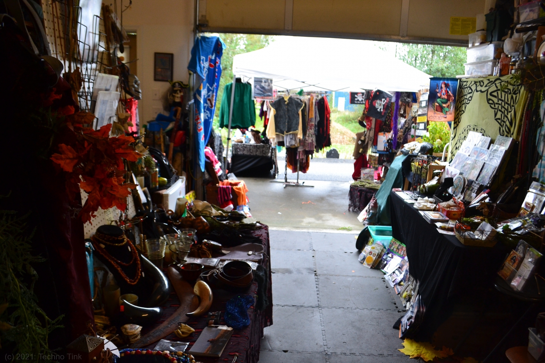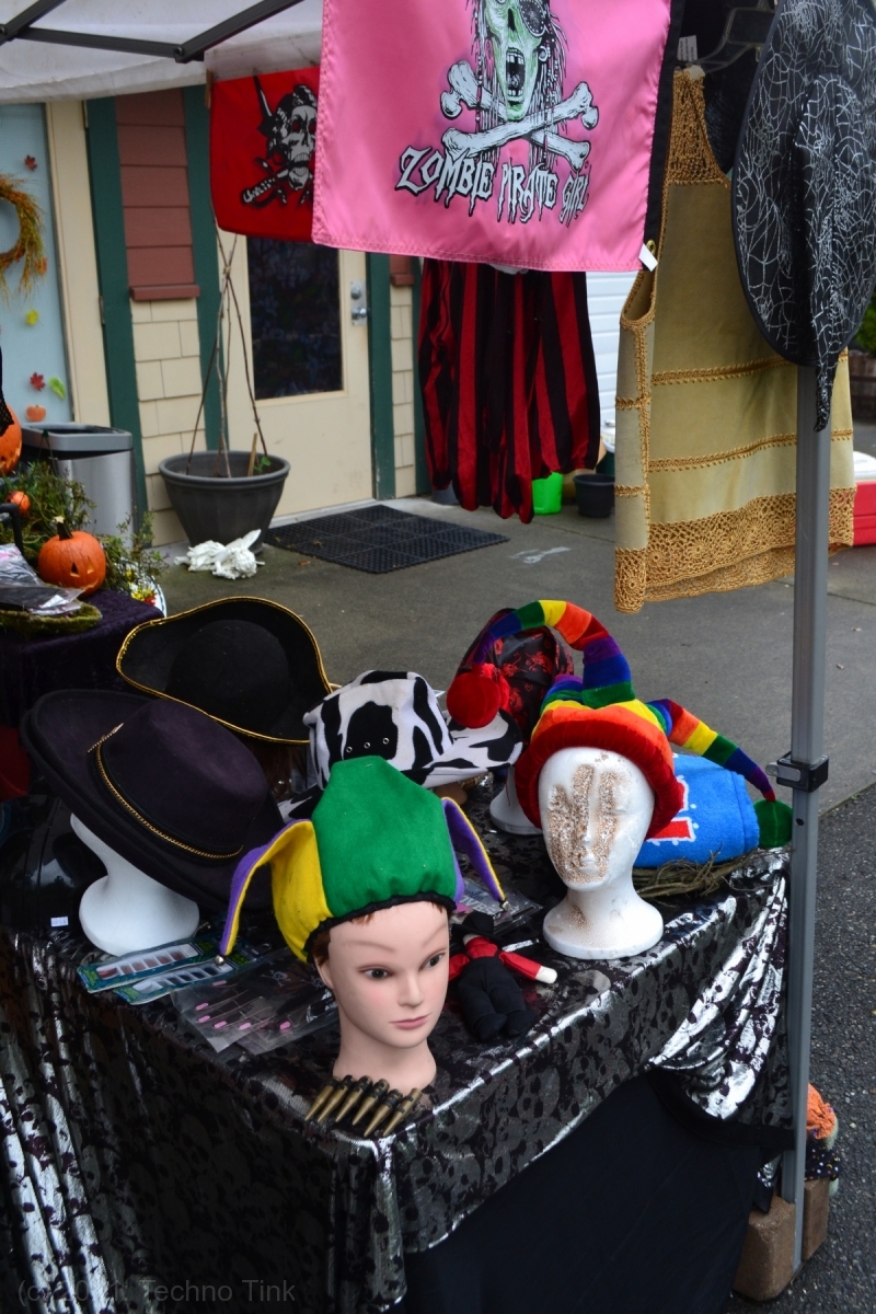 Early to rise, Oisin and Cian made breakfast and got ready for the sale day. Dad created some signs, laminated them, and they drove around the neighborhood affixing them to signposts. Back at Techno Tink Headquarters, they put out the clothing racks and costume displays – hoping for attendees to come shop. A few people came by, but not many. The neighbor Brian bought the male mannequin. A few other costumes for upcoming Halloween activities. They made enough sales to make it successful for the day.