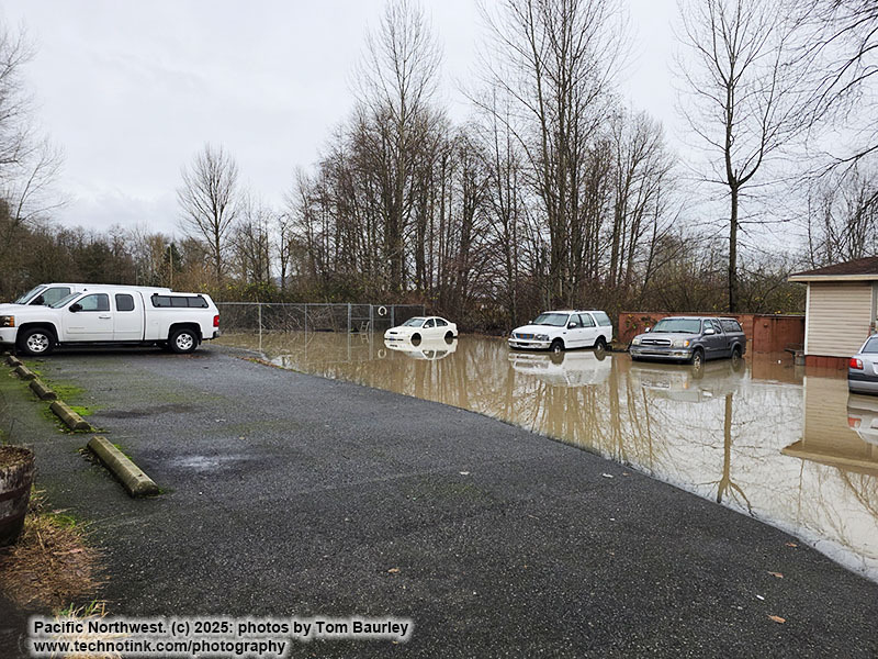 Awoke at 4 am to flood sirens, i peered outside and it was dry, just puddles in the street. At 8:30 am i walked outside, streets relatively dry, just puddles, no rain in the sky. Heard on the news the Canadian / US border in Sumas was closed except for emergency vehicles. I walk into the house / office just to grab something, go back outside and the street is underwater. Within the hour our mailboxes were completely submerged, as were many houses half underwater. Neighbor said the river will crest by noon and then will recede. We watched as rabbits sought higher ground, seeking refuge at our building which was now a island. No way in and no way out of our parking lot (now underwater) nor the city.
