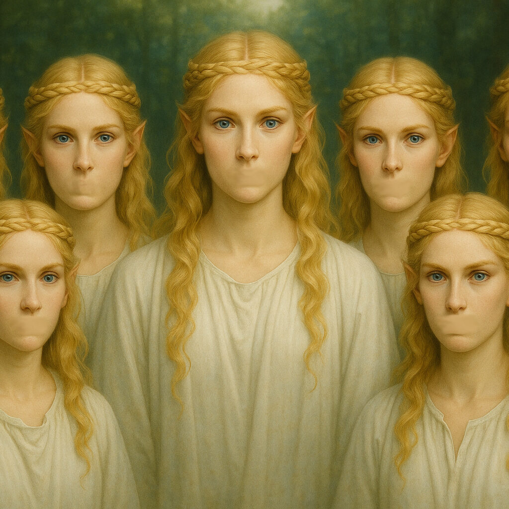 One night, in his pre-adult youth, Sir Tom dreamt of a council of seven luminous beings: robed in white, radiant yet serene. They seemed both male and female, both elven and human, their faces gentle but strange: each had eyes and a nose, yet no mouths.